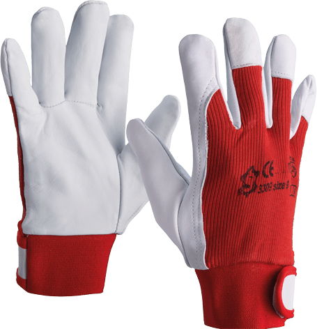 Article 3300R is a “Tropic” type glove made of nappa leather with a red interlock back and velcro closure.